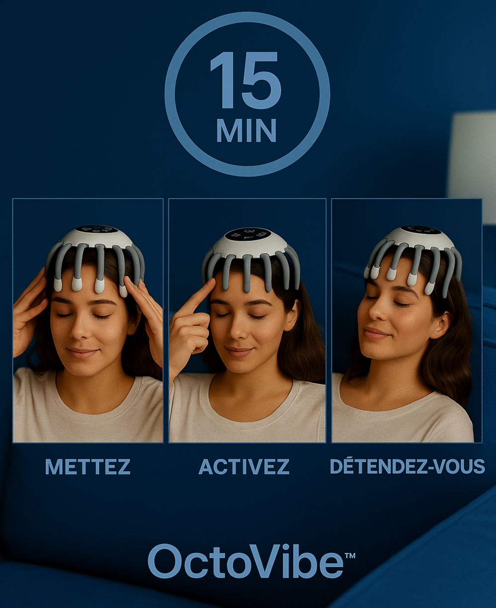Je souffre de migraines depuis des années, et depuis que j’utilise OctoVibe™, c’est le jour et la nuit. En 15 minutes, je suis détendue, apaisée, et mes douleurs diminuent. C’est devenu mon rituel du soir. À acheter les yeux fermés !