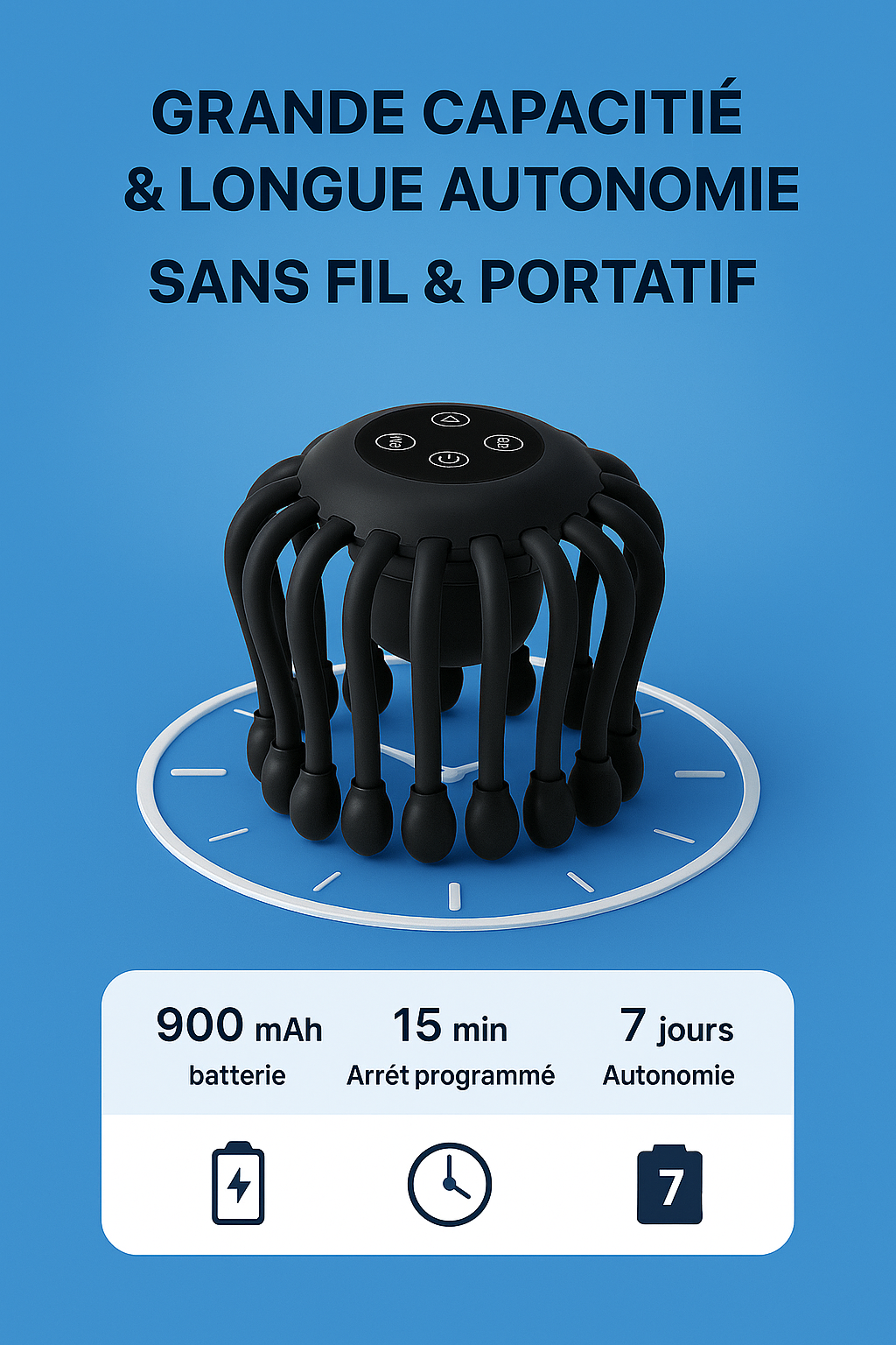 OctoVibe™ – Masseur Intelligent du Cuir Chevelu